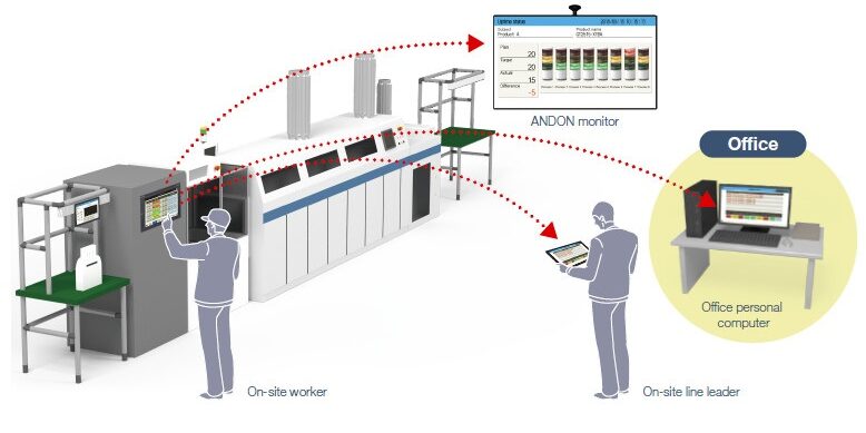 Fabrika alanlarında dijitalleşme, üretim süreci içerisinde oluşan tüm verilerin bir veri tabanına (ERP sistemine)kaydedilmesi ve bu verilerin yönetimi için yazılım ve teknolojik çözümlerin kullanılmasıdır. Andon ekranlar ise üretim alanlarındaki dijitalleşmenin bir parçası olarak bu verileri anlık olarak ekranlara yansıtmaktadır. Üretim hattının durumu, üretim hızı ve verimliliği, hata/arıza durumları gibi anlık bilgilendirmeye ihtiyaç duyulan veriler, yazılımı aracılığı ile üretim takip ekranlarına taşınmaktadır.