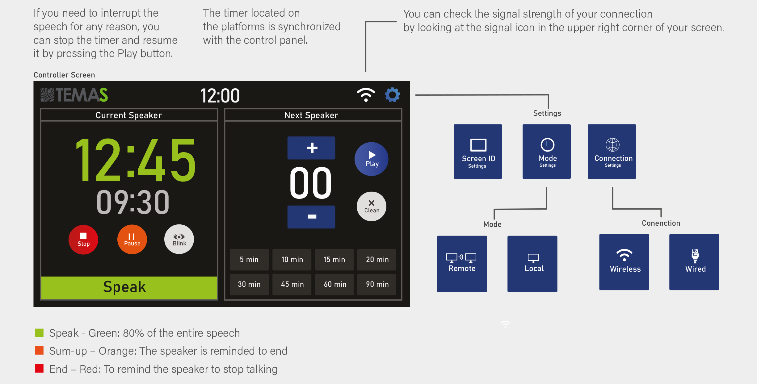 You can control a 5″ stopwatch on the podium at your fingertips with this wireless presentation timer using its 7″ touch panel,